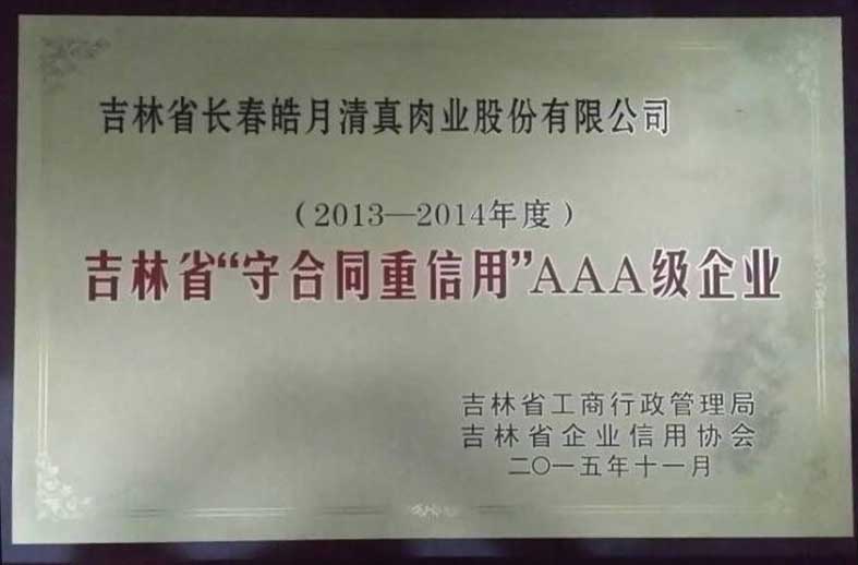 吉林省“守合同重信用”AAA級(jí)企業(yè)