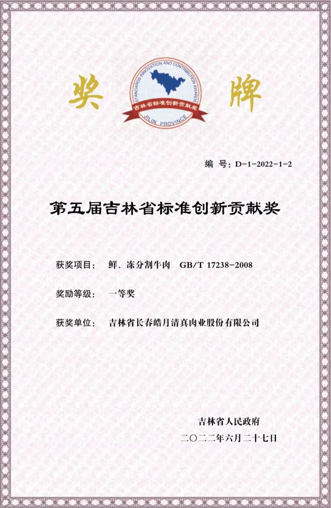第五屆吉林省標(biāo)準(zhǔn)創(chuàng)新貢獻(xiàn)獎(jiǎng)